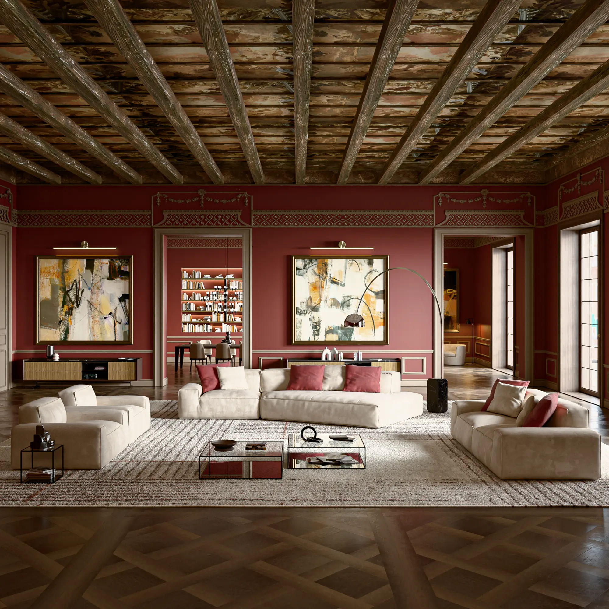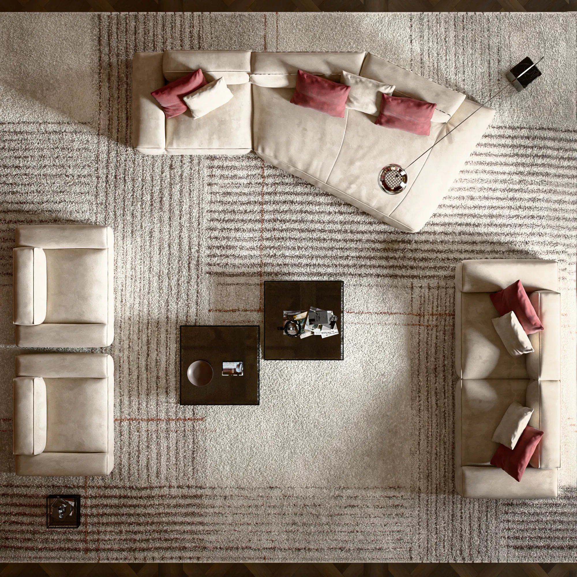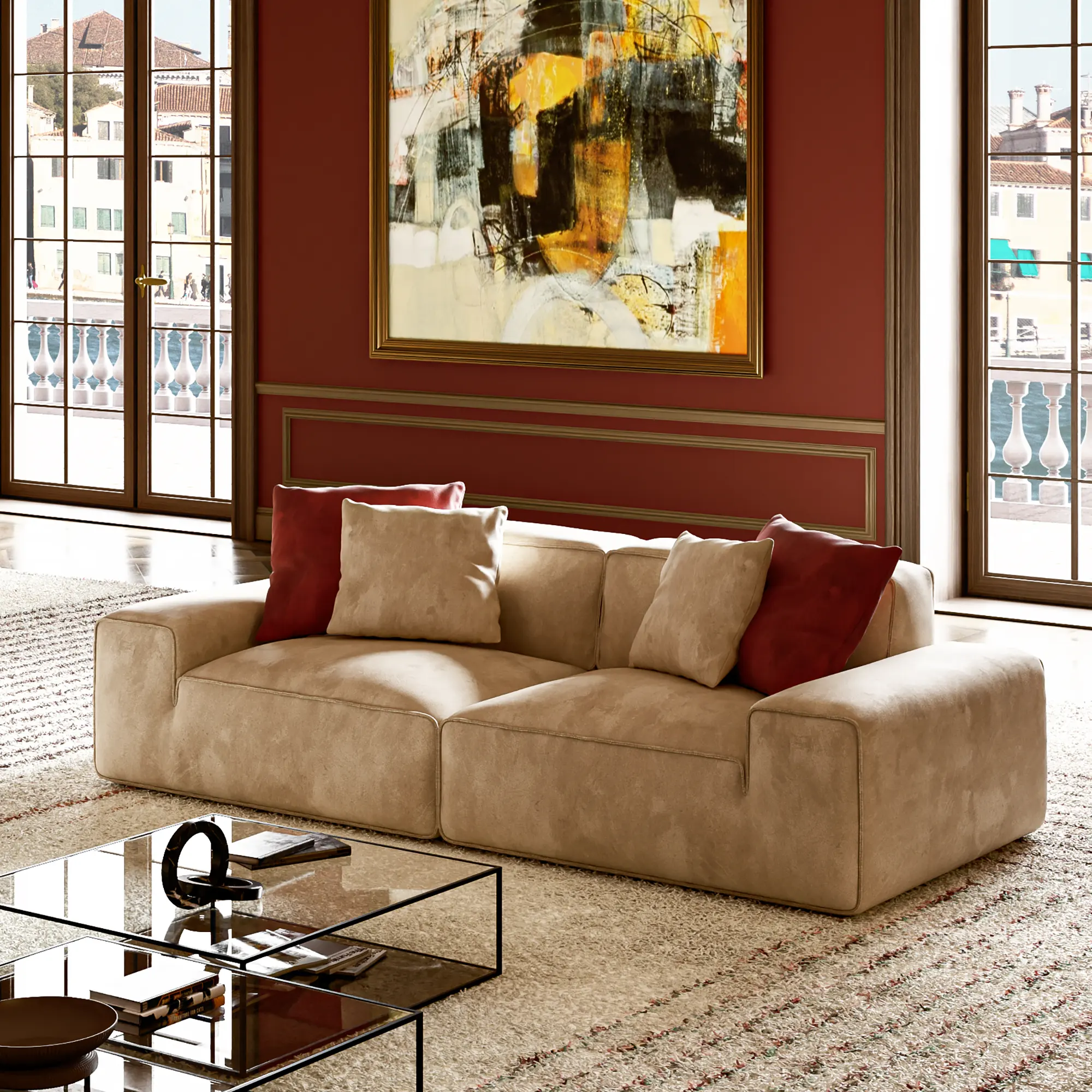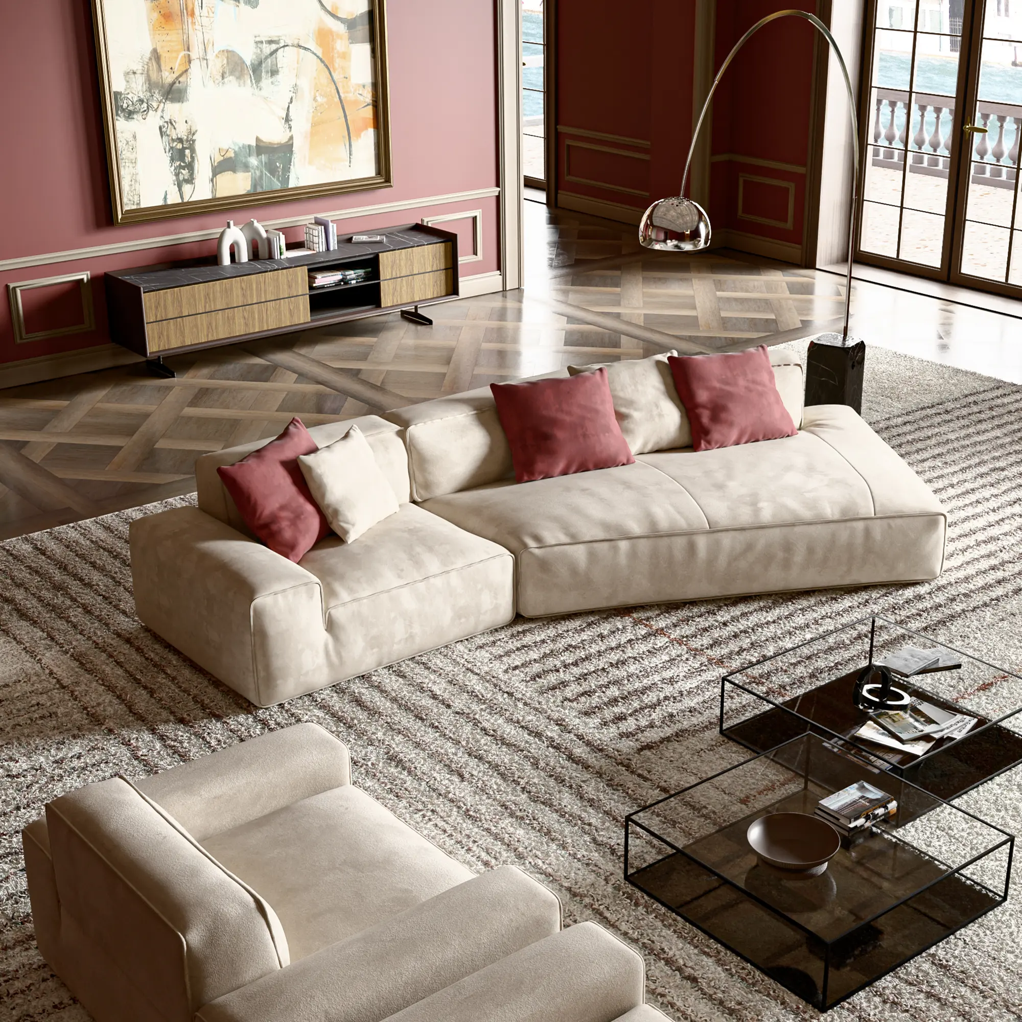 Um sofá linear, caracterizado por uma estética leve mas acolhedora nas proporções. Pensado para mobilar com estilo, expressão de um design moderno e  máximo conforto. Um ícone de estilo nascido da dialética entre o designer e o know-how do artesão.