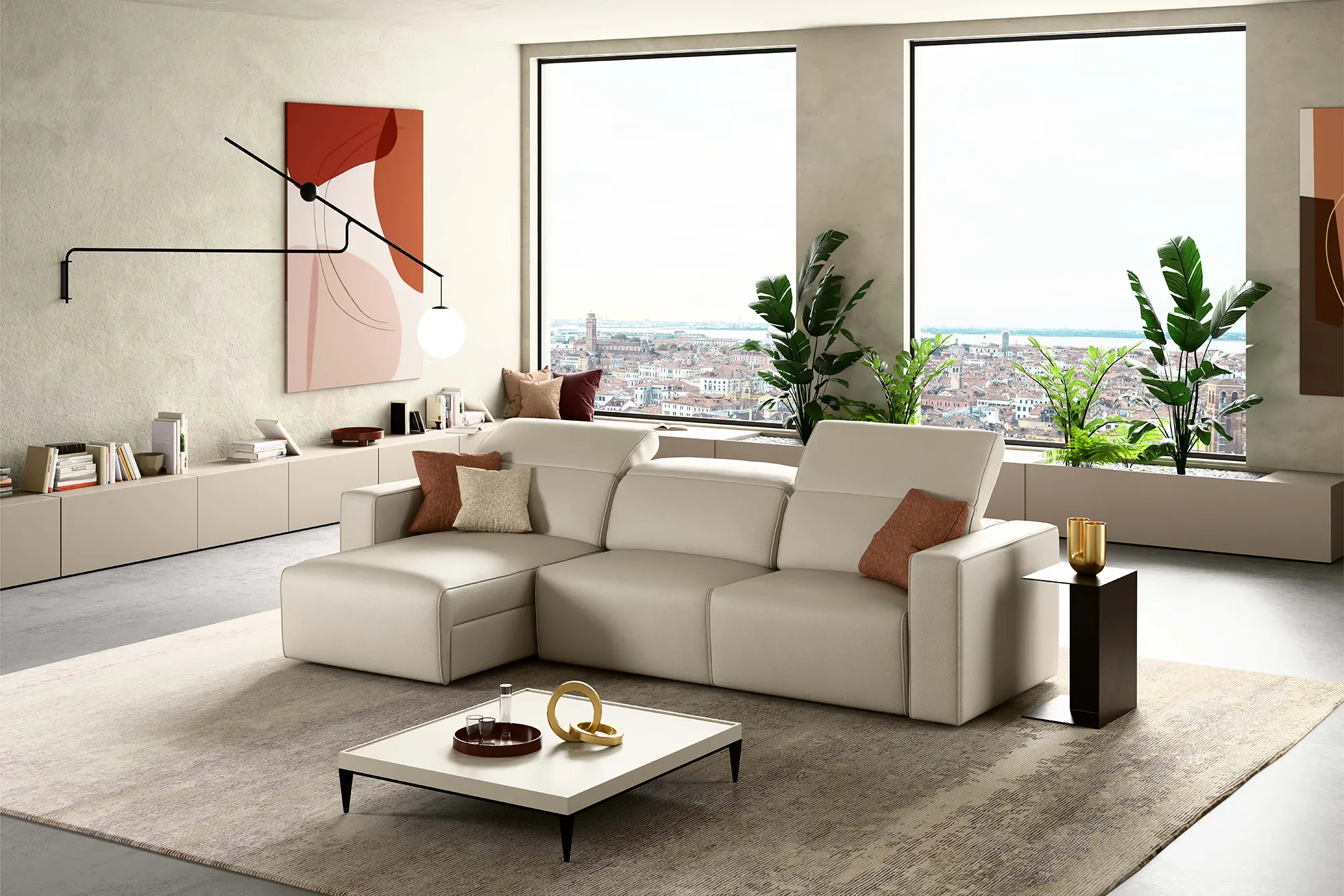 É a solução que o conquista graças ao seu design minimalista e extrema praticidade. De facto, bastam alguns simples gestos para transformar um sofá de linhas modernas na mais acolhedora das camas. Sofá cama em tecido removível. Possui um colchão de 17cm de altura para conforto e uso frequente.